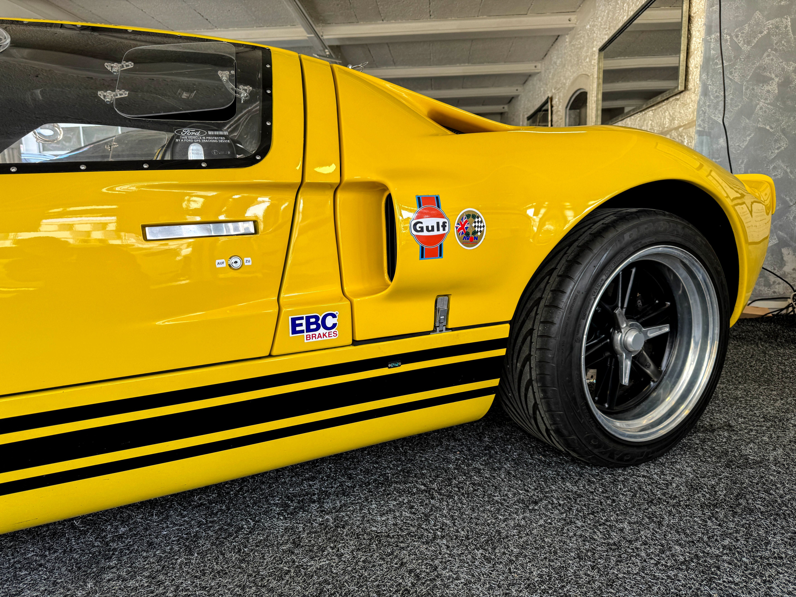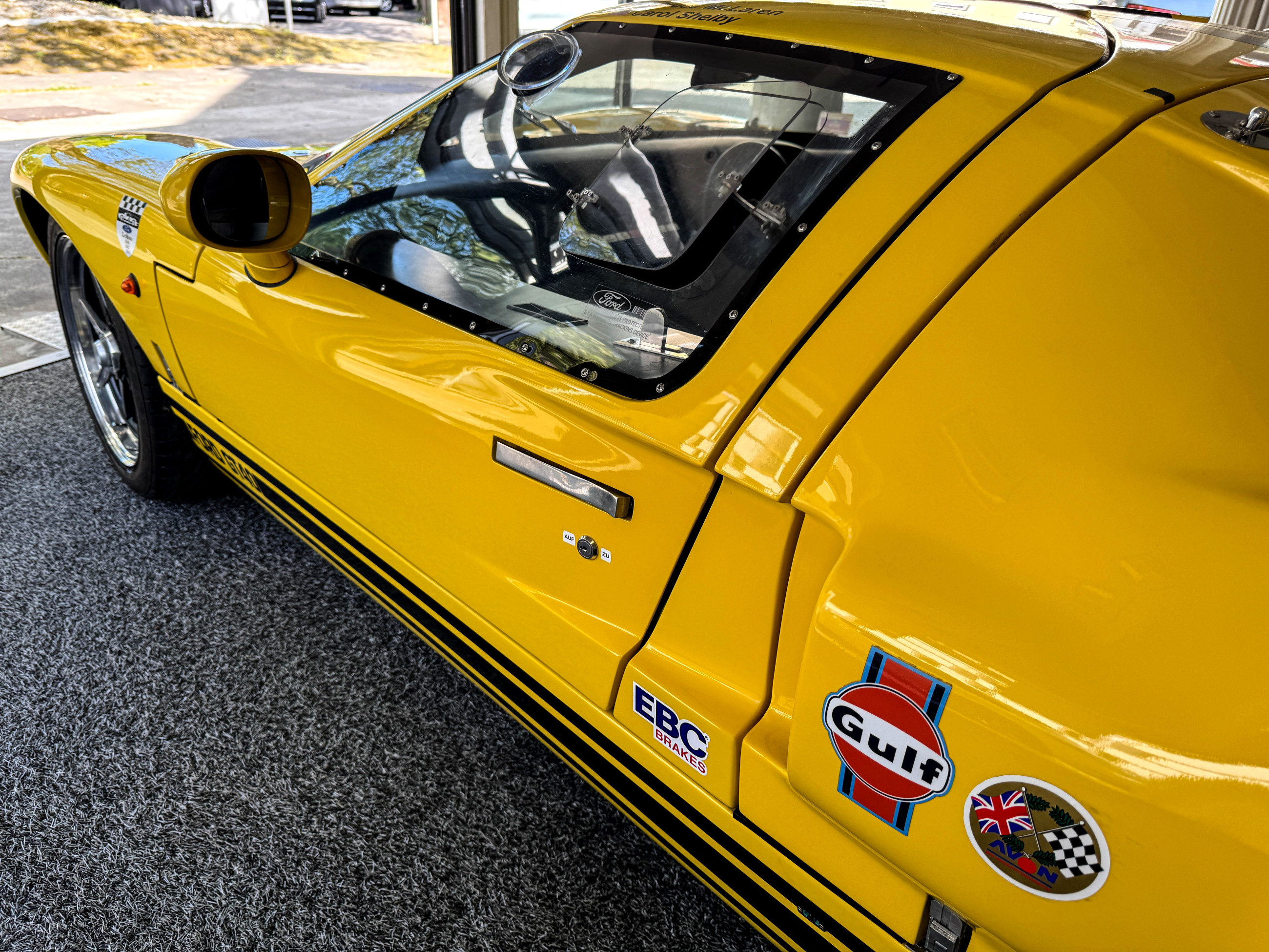 - Wie die originalen GT40 ist dieses Fahrzeug ein Rechtslenker (RHD) mit abnehmbaren Lenkrad.